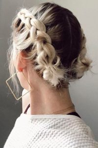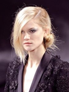 Stylist Tip: Conceal the elastic with a wrapped strand of hair.